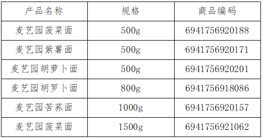 安康市麦艺园富硒食品开发股份有限公司始终将消费者的健康与权益置于首位,并致力于为市场提供安全、优质的产品。我公司部分批次的产品因生产流程中的疏忽,存在包装标签标识瑕疵,现决定对该部分产品实施召回。